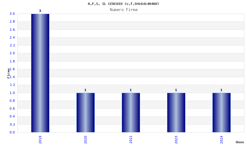 | Anno | Firme | Importi | Media | Naz. | Reg. | Prov. | Comu. |