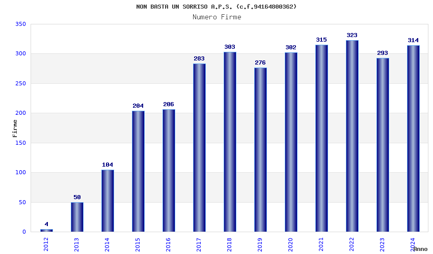 | Anno | Firme | Importi | Media | Naz. | Reg. | Prov. | Comu. |