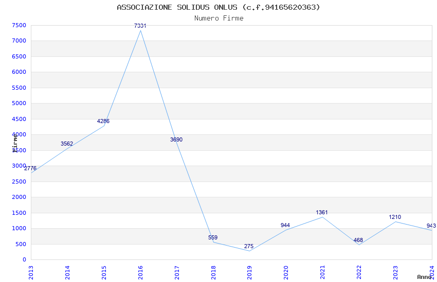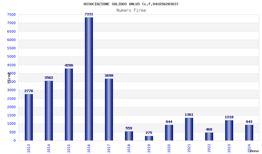 | Anno | Firme | Importi | Media | Naz. | Reg. | Prov. | Comu. |