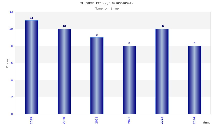 | Anno | Firme | Importi | Media | Naz. | Reg. | Prov. | Comu. |