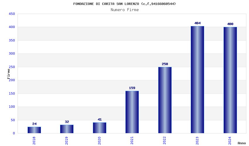 | Anno | Firme | Importi | Media | Naz. | Reg. | Prov. | Comu. |