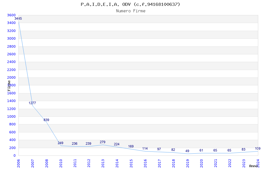 | 2023 | 83 | 3.722,44 | 44,85 | 14.359 | 927 | 494 | 3 |