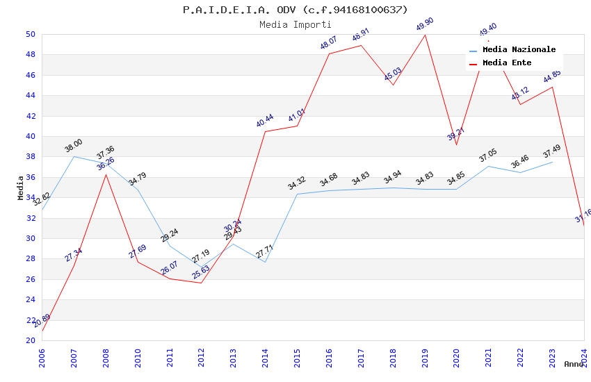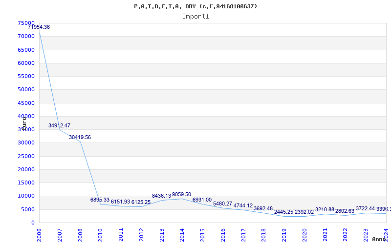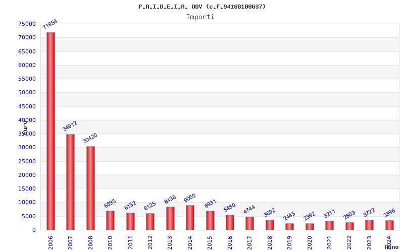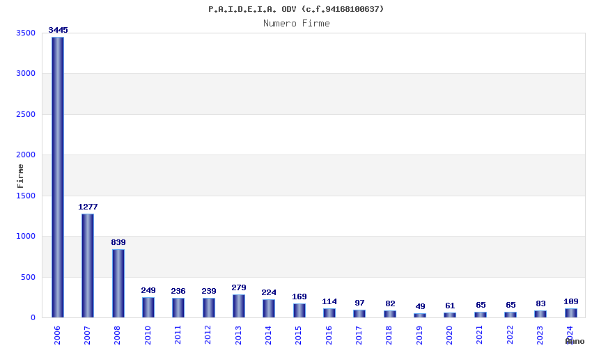 | Anno | Firme | Importi | Media | Naz. | Reg. | Prov. | Comu. |
