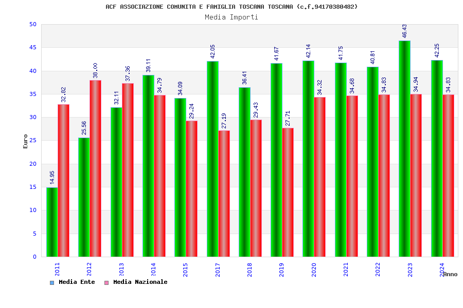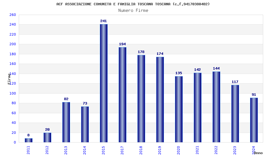 | Anno | Firme | Importi | Media | Naz. | Reg. | Prov. | Comu. |