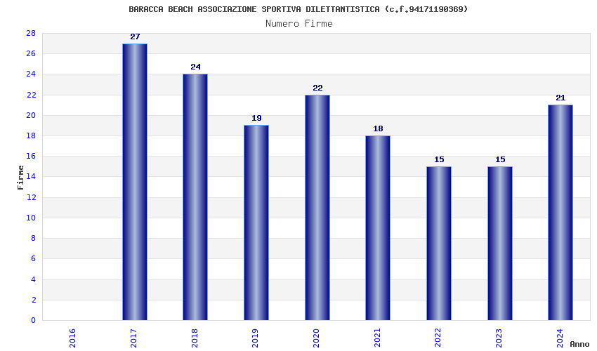 | 2017 | 27 | 705,61 | 26,13 | 39.545 | 3.516 | 449 | 7 |