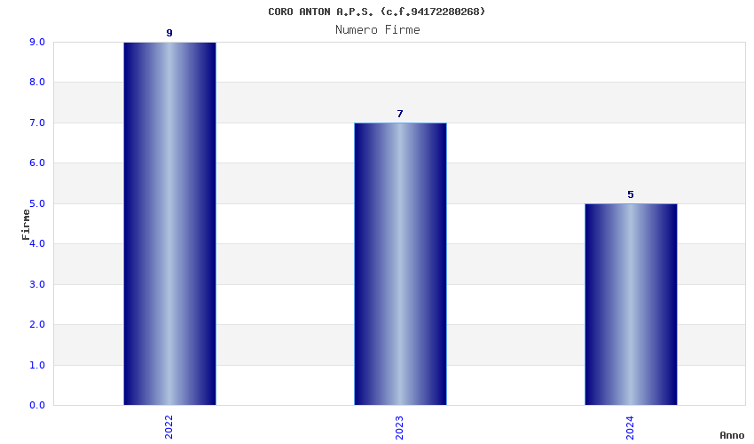 | Anno | Firme | Importi | Media | Naz. | Reg. | Prov. | Comu. |