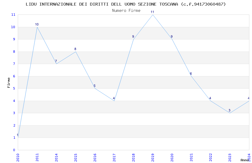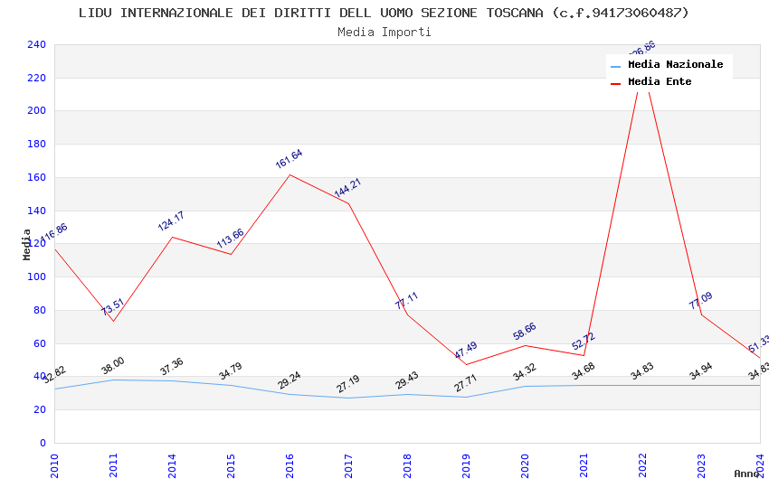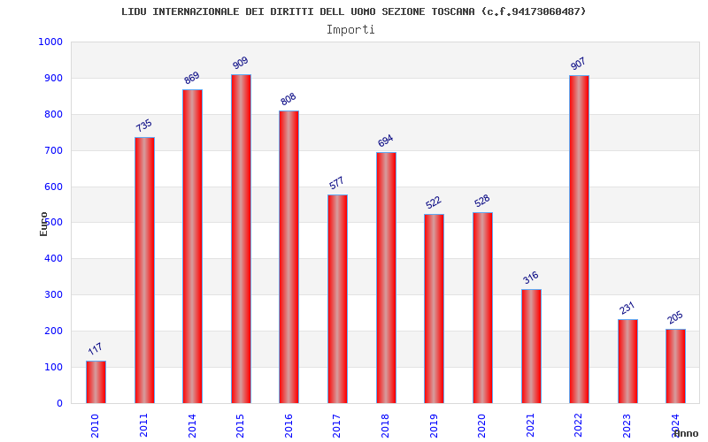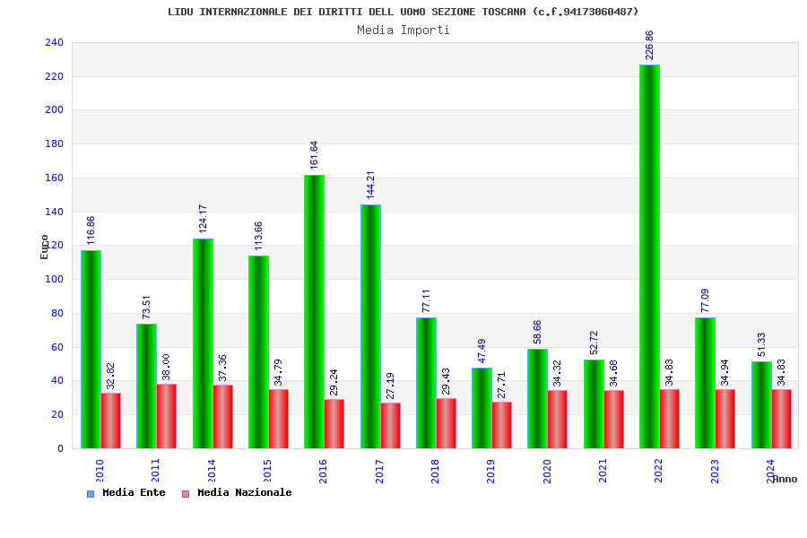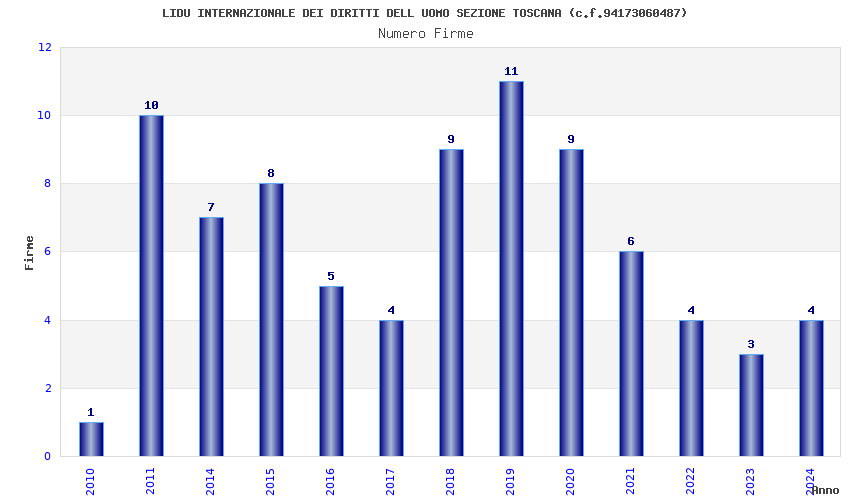 | Anno | Firme | Importi | Media | Naz. | Reg. | Prov. | Comu. |