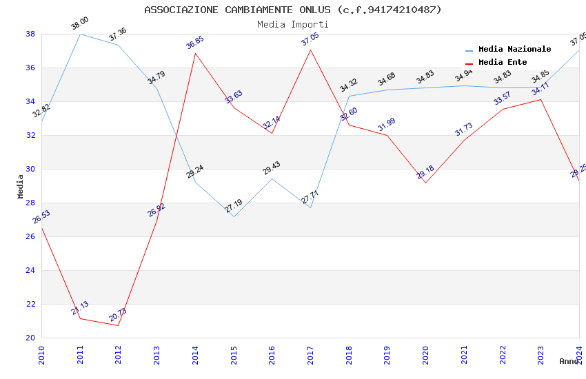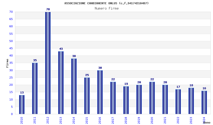 | Anno | Firme | Importi | Media | Naz. | Reg. | Prov. | Comu. |