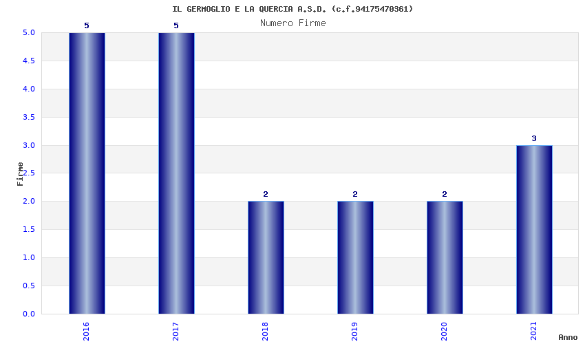 | Anno | Firme | Importi | Media | Naz. | Reg. | Prov. | Comu. |