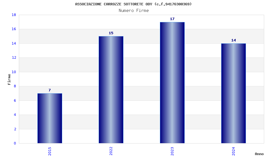 | Anno | Firme | Importi | Media | Naz. | Reg. | Prov. | Comu. |