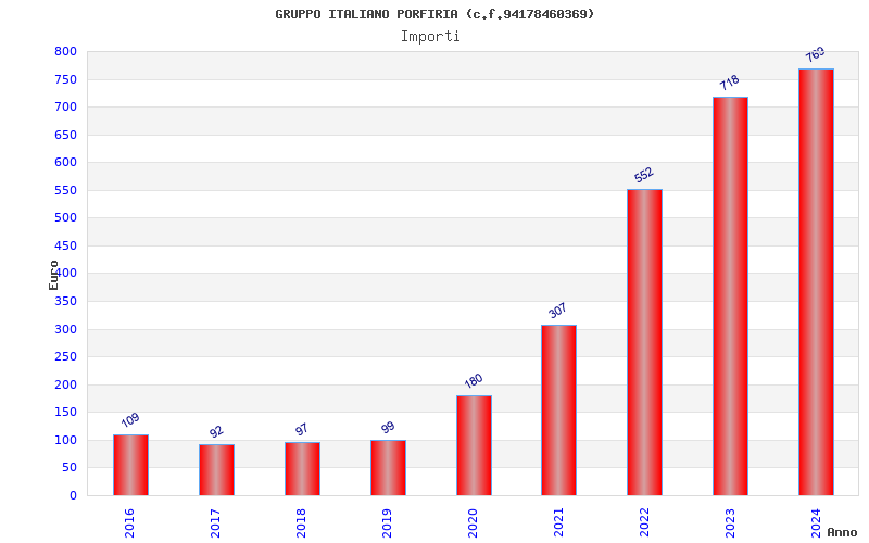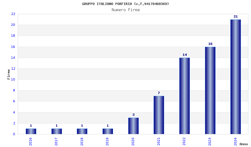 | Anno | Firme | Importi | Media | Naz. | Reg. | Prov. | Comu. |