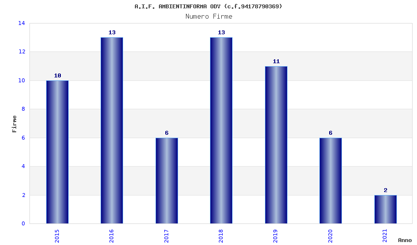 | Anno | Firme | Importi | Media | Naz. | Reg. | Prov. | Comu. |