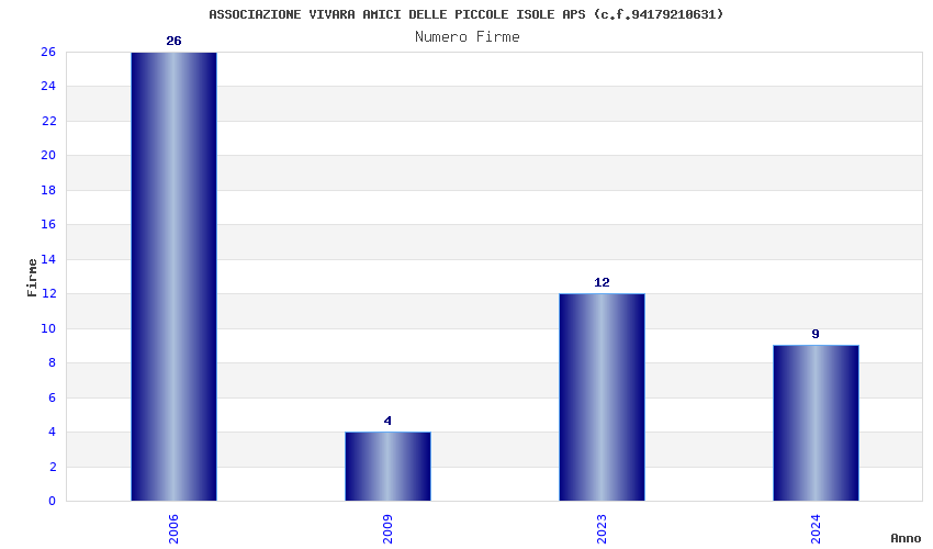 | Anno | Firme | Importi | Media | Naz. | Reg. | Prov. | Comu. |