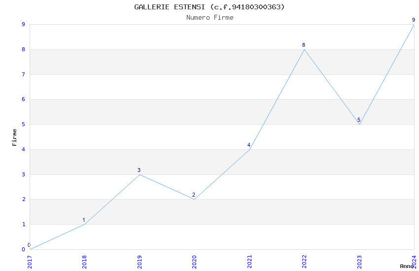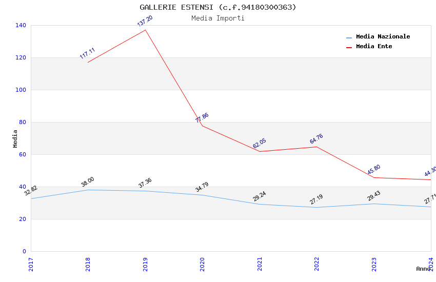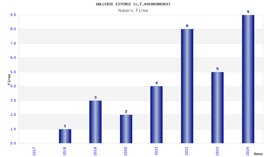 | Anno | Firme | Importi | Media | Naz. | Reg. | Prov. | Comu. |