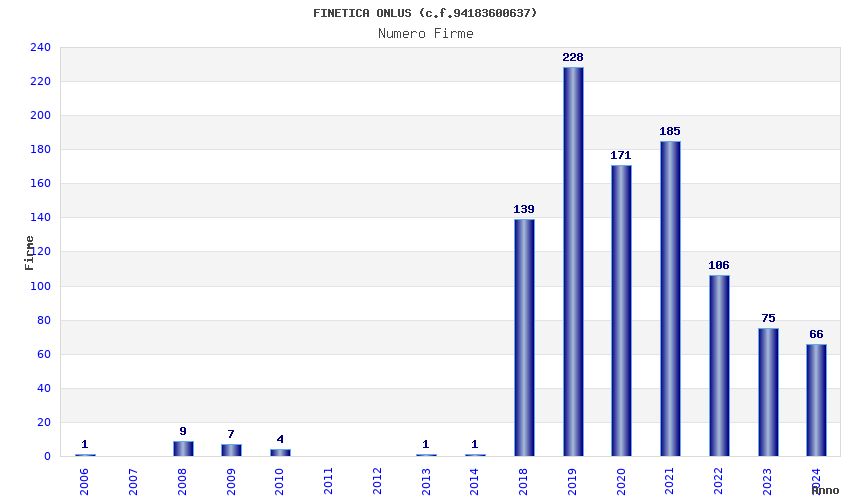 | Anno | Firme | Importi | Media | Naz. | Reg. | Prov. | Comu. |