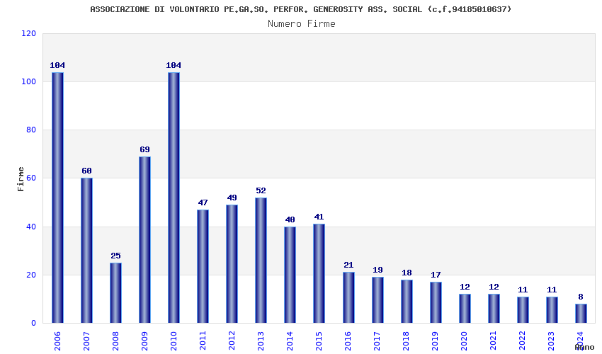 | Anno | Firme | Importi | Media | Naz. | Reg. | Prov. | Comu. |