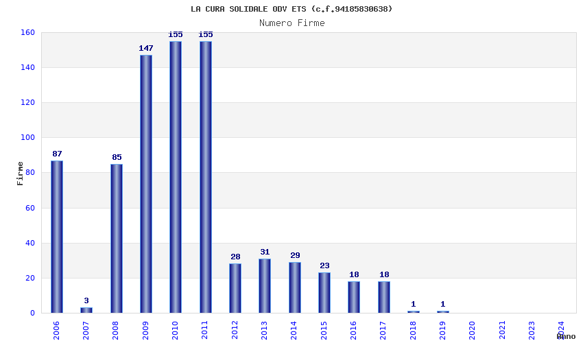 | Anno | Firme | Importi | Media | Naz. | Reg. | Prov. | Comu. |