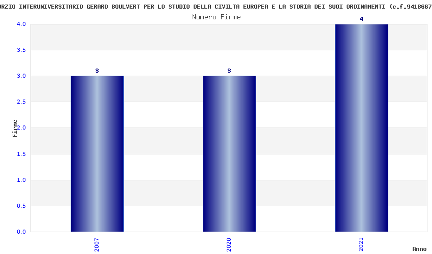 | Anno | Firme | Importi | Media | Naz. | Reg. | Prov. | Comu. |