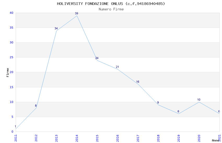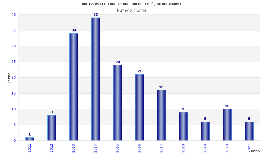 | Anno | Firme | Importi | Media | Naz. | Reg. | Prov. | Comu. |