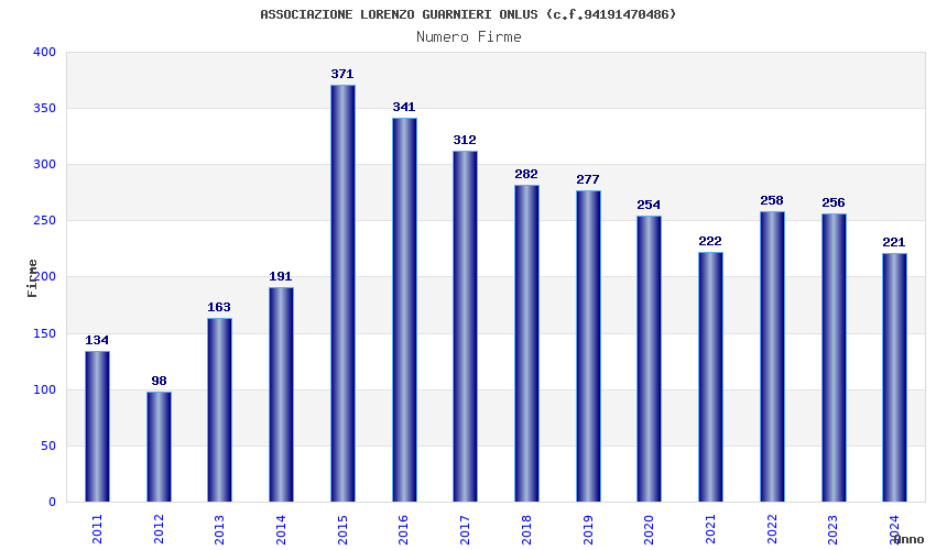 | Anno | Firme | Importi | Media | Naz. | Reg. | Prov. | Comu. |