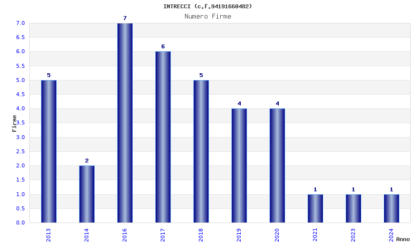 | Anno | Firme | Importi | Media | Naz. | Reg. | Prov. | Comu. |