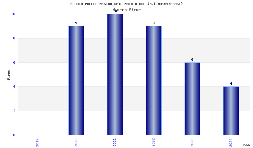 | Anno | Firme | Importi | Media | Naz. | Reg. | Prov. | Comu. |