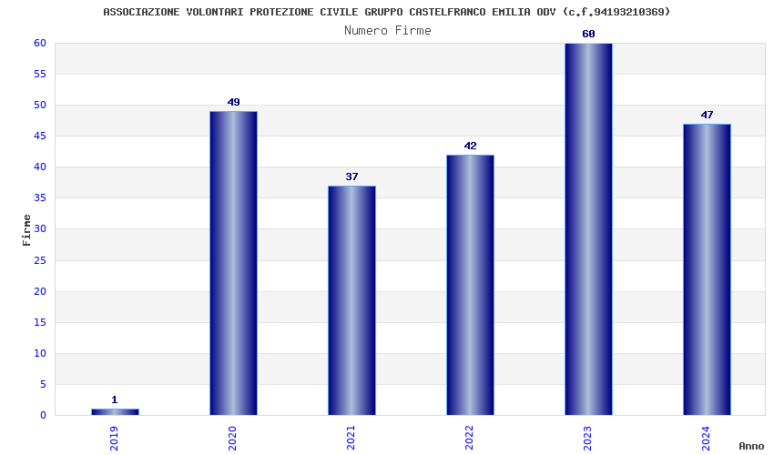 | Anno | Firme | Importi | Media | Naz. | Reg. | Prov. | Comu. |
