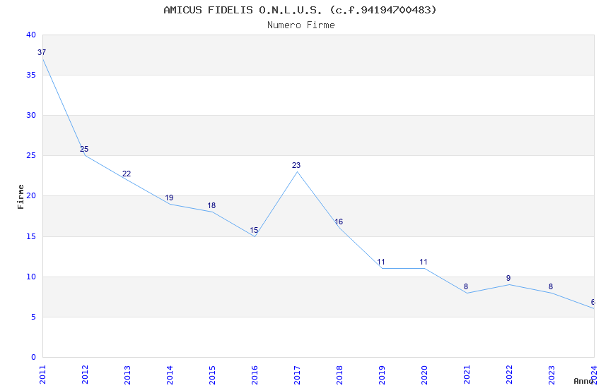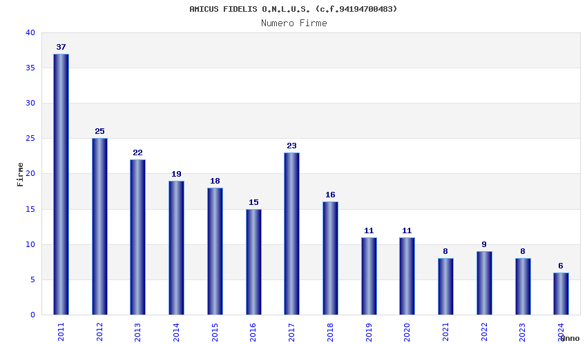 | Anno | Firme | Importi | Media | Naz. | Reg. | Prov. | Comu. |