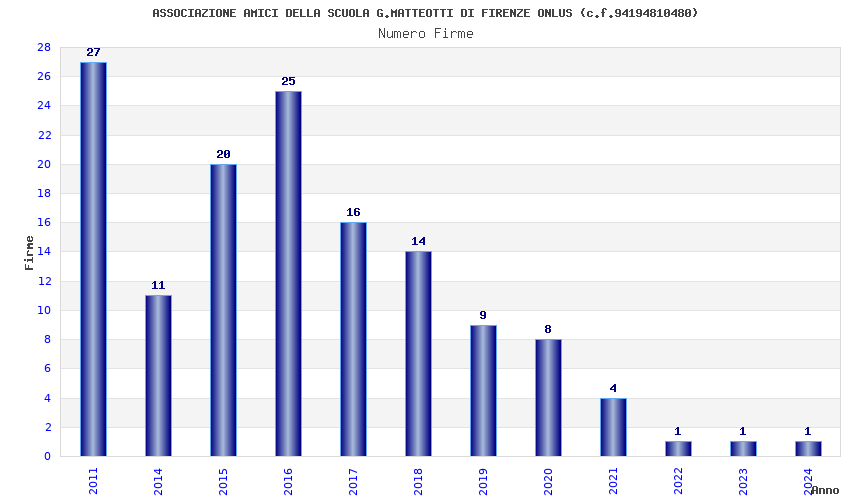 | Anno | Firme | Importi | Media | Naz. | Reg. | Prov. | Comu. |