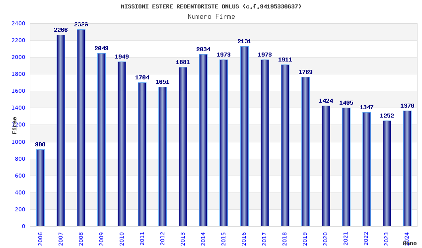 | Anno | Firme | Importi | Media | Naz. | Reg. | Prov. | Comu. |