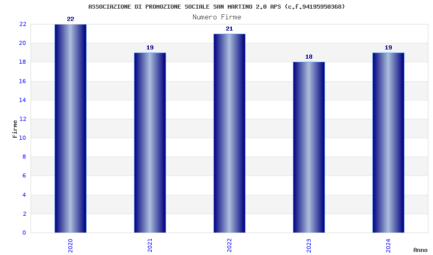 | Anno | Firme | Importi | Media | Naz. | Reg. | Prov. | Comu. |