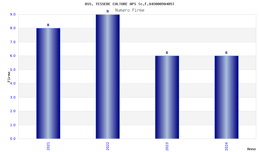 | Anno | Firme | Importi | Media | Naz. | Reg. | Prov. | Comu. |