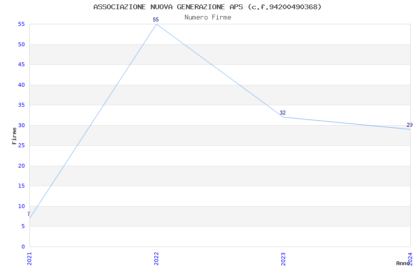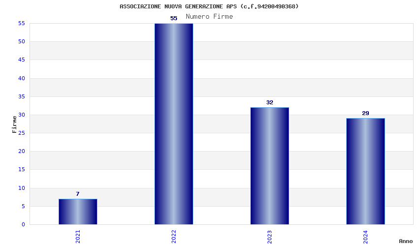 | Anno | Firme | Importi | Media | Naz. | Reg. | Prov. | Comu. |