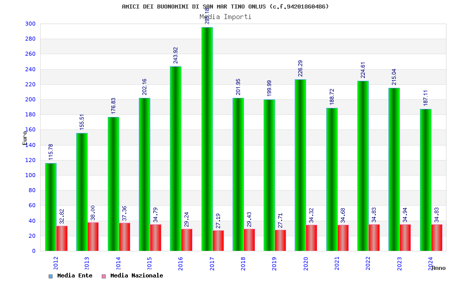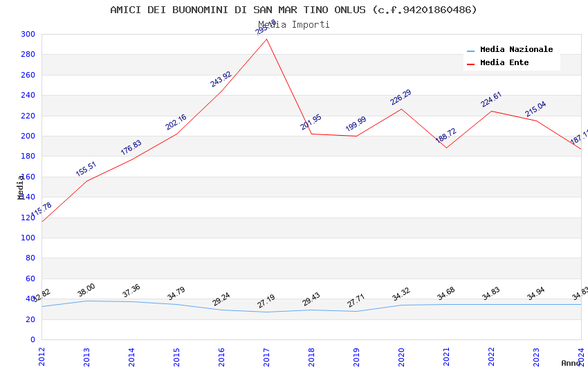 | Anno | Firme | Importi | Media | Naz. | Reg. | Prov. | Comu. |