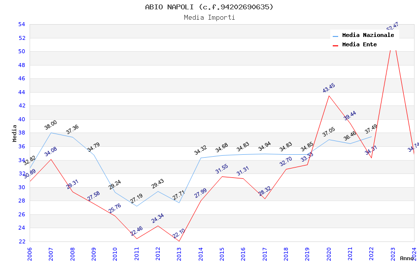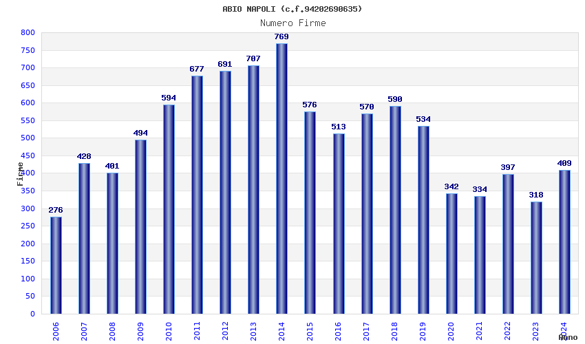 | Anno | Firme | Importi | Media | Naz. | Reg. | Prov. | Comu. |