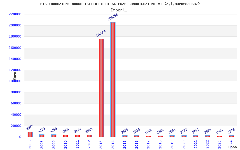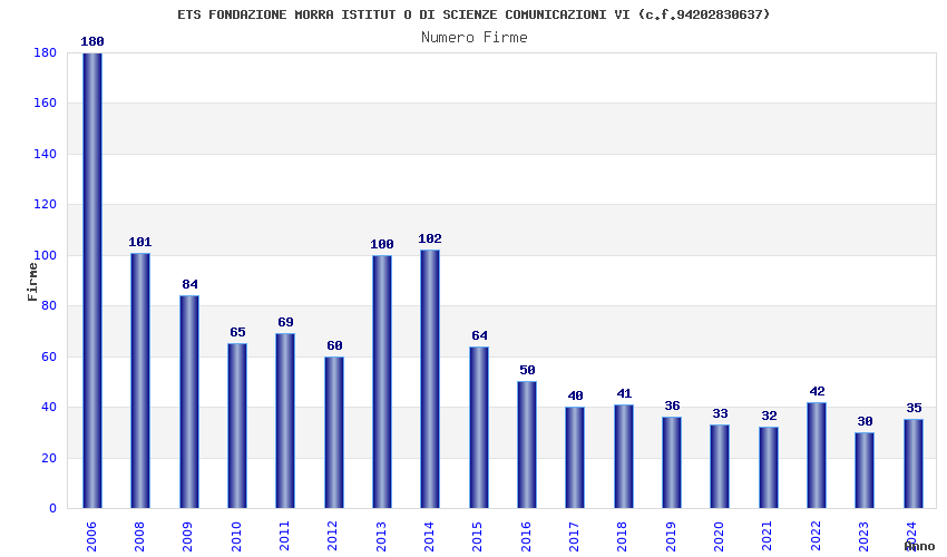 | Anno | Firme | Importi | Media | Naz. | Reg. | Prov. | Comu. |