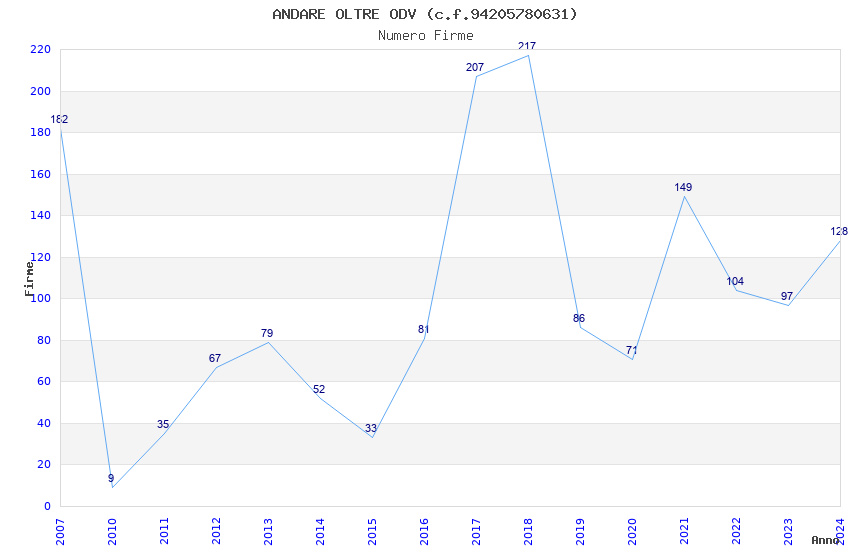 | 2018 | 217 | 14.562,38 | 67,11 | 3.240 | 171 | 107 | 3 |