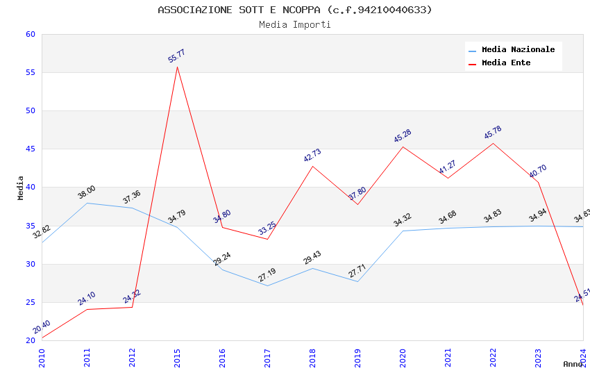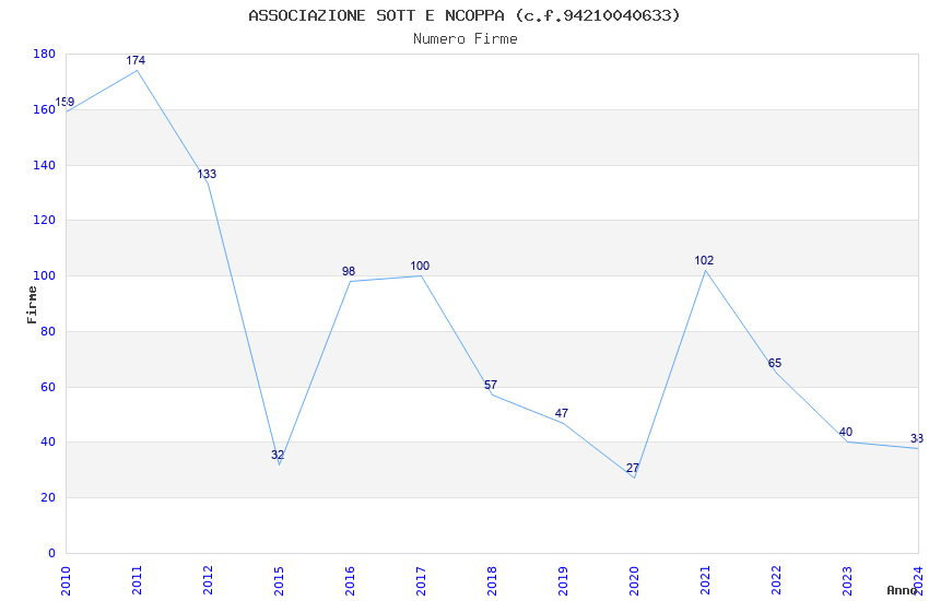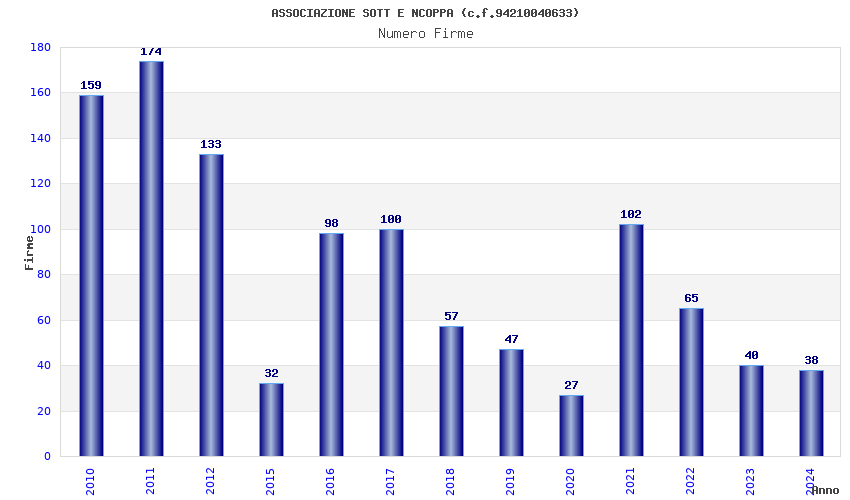 | Anno | Firme | Importi | Media | Naz. | Reg. | Prov. | Comu. |