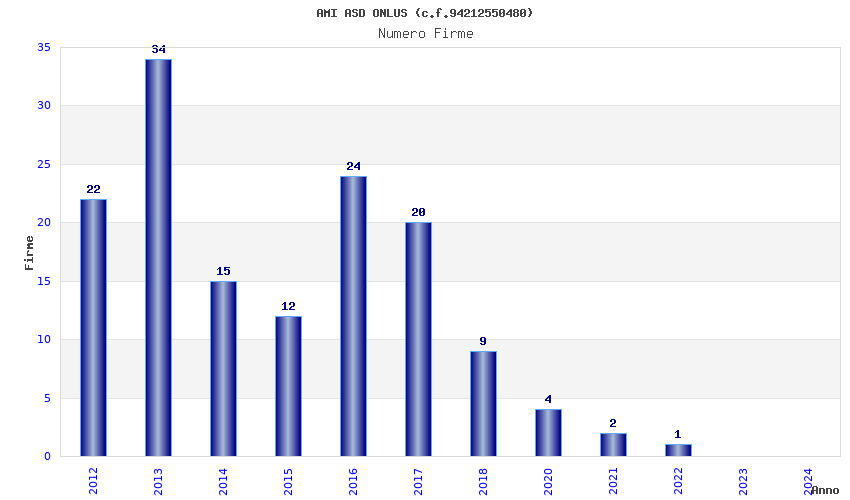 | Anno | Firme | Importi | Media | Naz. | Reg. | Prov. | Comu. |