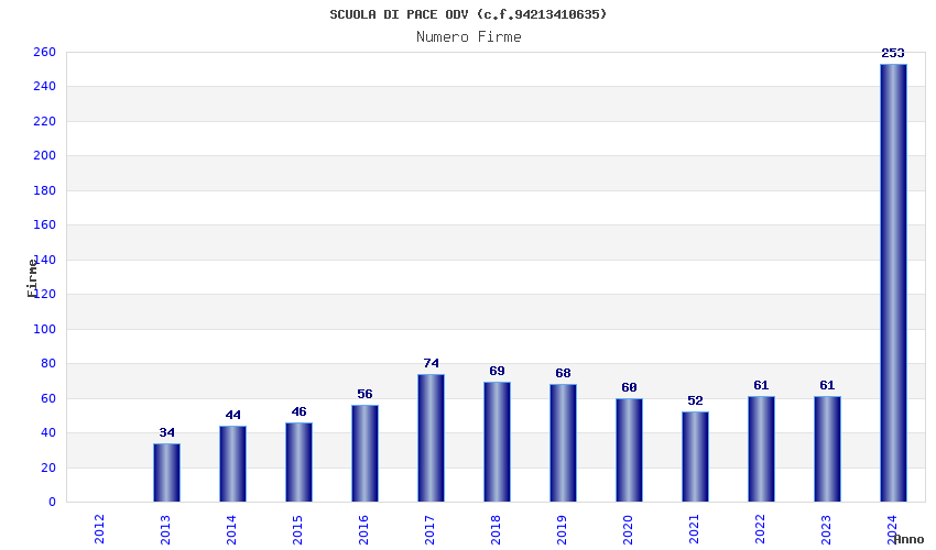 | Anno | Firme | Importi | Media | Naz. | Reg. | Prov. | Comu. |