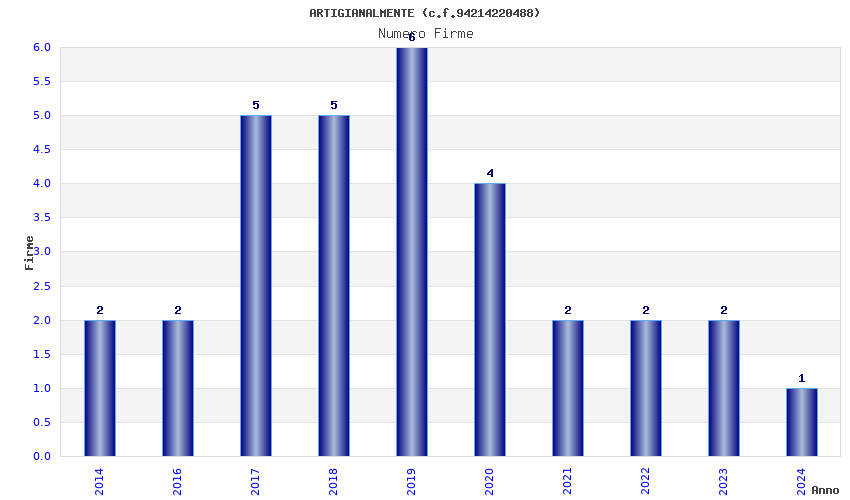 | Anno | Firme | Importi | Media | Naz. | Reg. | Prov. | Comu. |