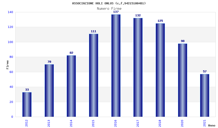 | Anno | Firme | Importi | Media | Naz. | Reg. | Prov. | Comu. |
