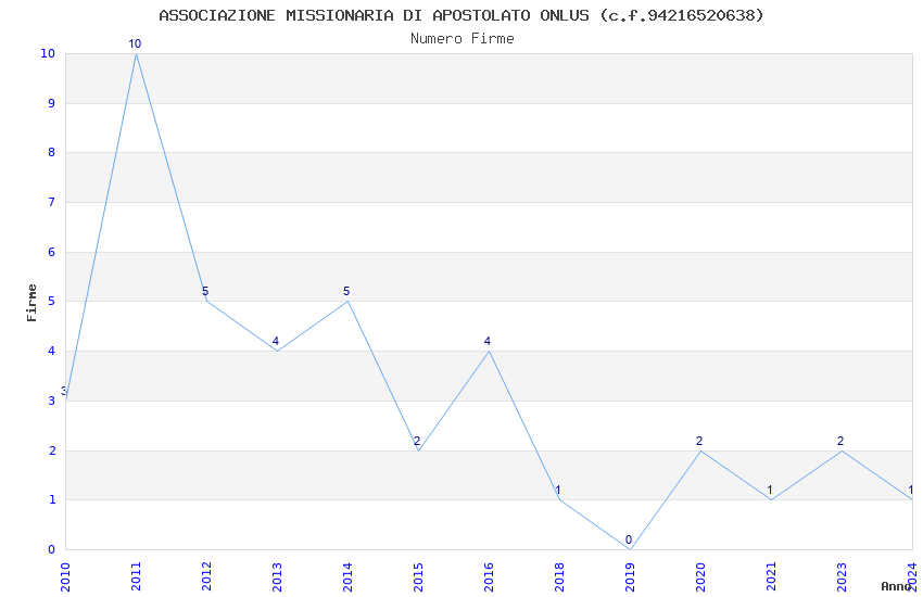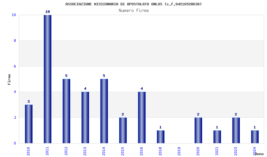 | Anno | Firme | Importi | Media | Naz. | Reg. | Prov. | Comu. |