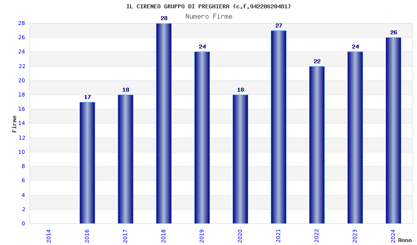 | Anno | Firme | Importi | Media | Naz. | Reg. | Prov. | Comu. |