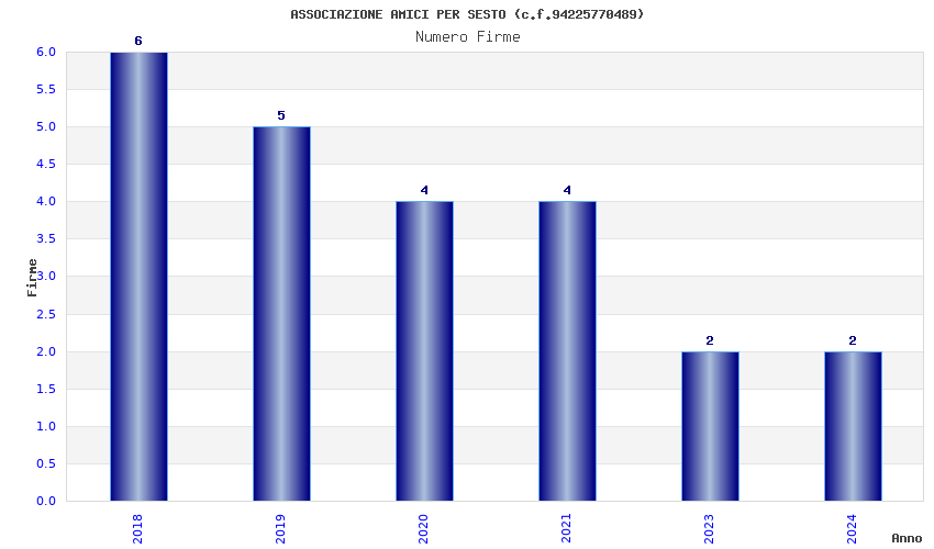 | Anno | Firme | Importi | Media | Naz. | Reg. | Prov. | Comu. |