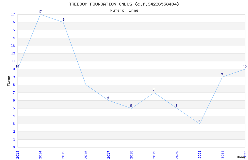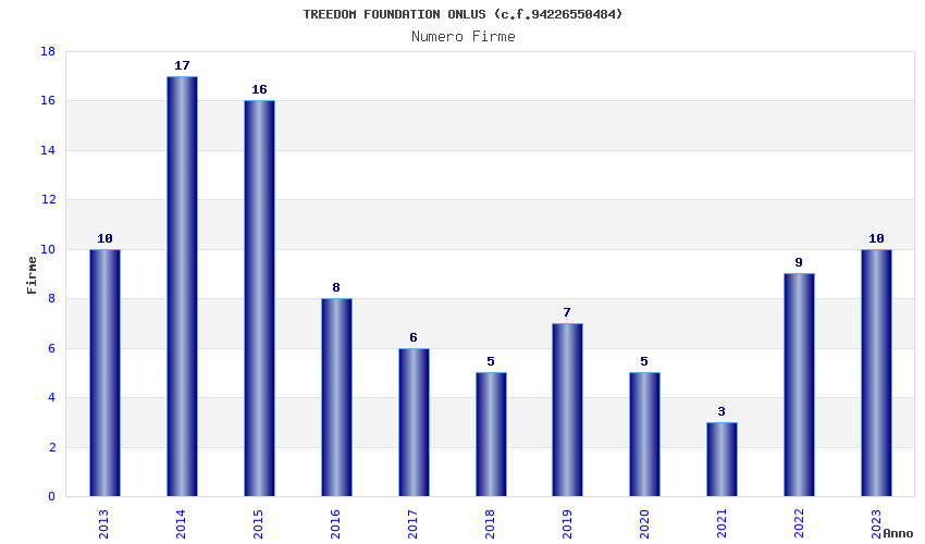 | Anno | Firme | Importi | Media | Naz. | Reg. | Prov. | Comu. |