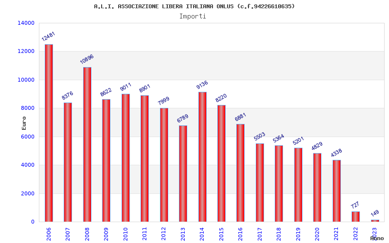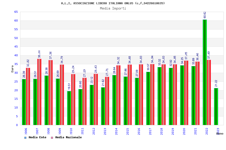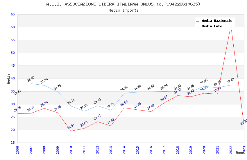 | Anno | Firme | Importi | Media | Naz. | Reg. | Prov. | Comu. |