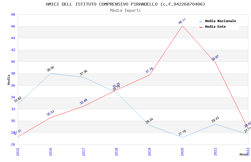 | Anno | Firme | Importi | Media | Naz. | Reg. | Prov. | Comu. |
