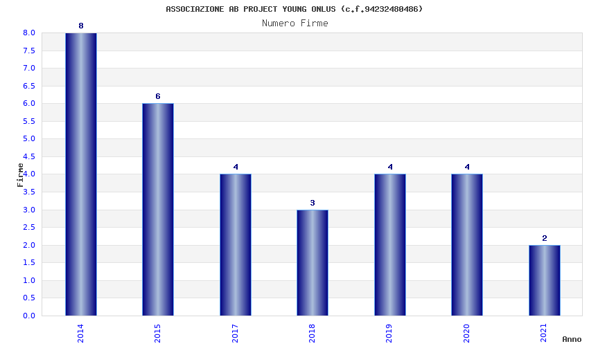 | Anno | Firme | Importi | Media | Naz. | Reg. | Prov. | Comu. |