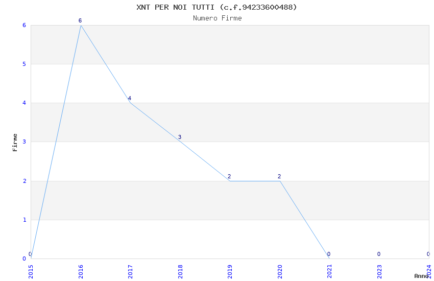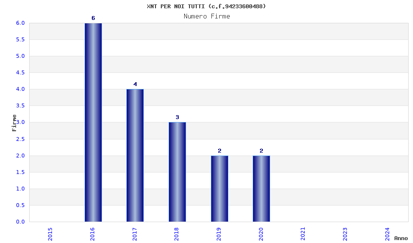 | Anno | Firme | Importi | Media | Naz. | Reg. | Prov. | Comu. |